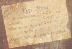 The label says that it is type "Evm", but this should read "Evh" according to the catalog "Kgl. Telegrafverkets apparater 1906".