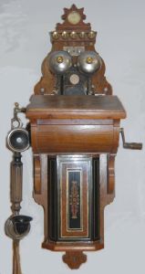 This wall telephone, serial number 137836 from year 1897, was made for Stockholms Almänna Telefon by L.M.Ericsson. The Stockholms Almänna Telefon katalog describes it as Model KH.